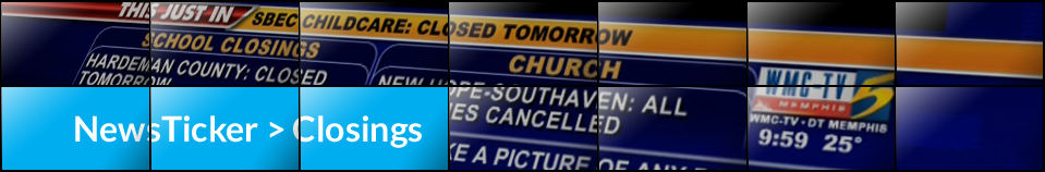 NewsTicker Closings is the most widely used school and business closing system in America. Clients include stations from three of the four major network O&Os, Cox, Gannett, Gray, Journal, Media General, Meredith, Nexstar, Quincy, Raycom, Scripps, Sinclair, Tribune, and more.